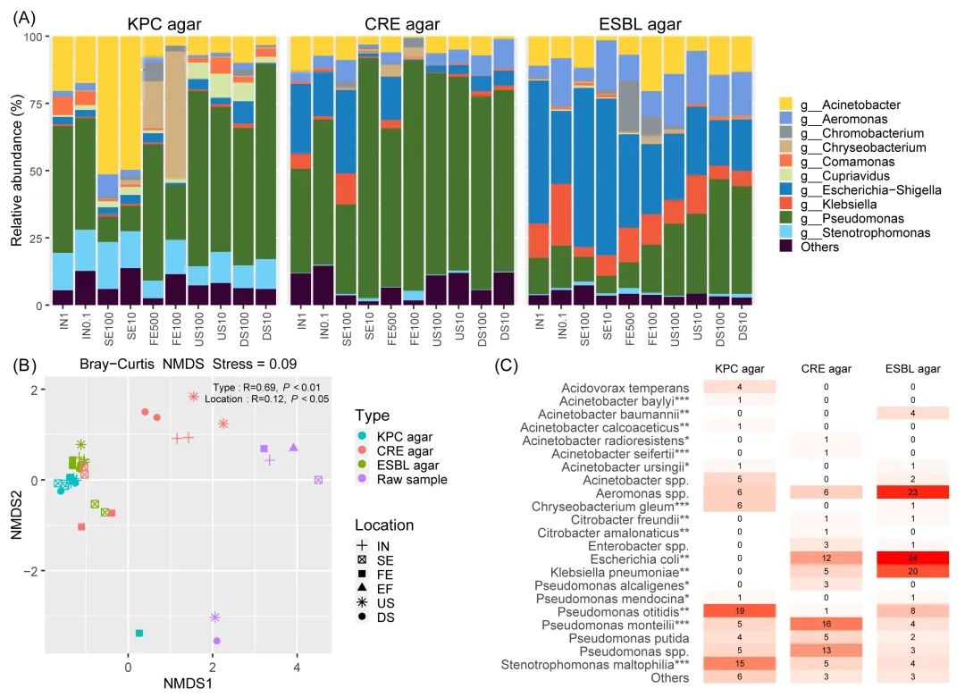 圖2. 環(huán)境樣本中超廣譜抗生素耐藥表型微生物群落組成和多樣性