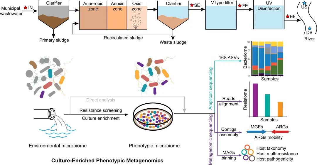 圖1. 本研究提出了表型宏基因組方法學并應用于污水環(huán)境靶標耐藥組檢測。