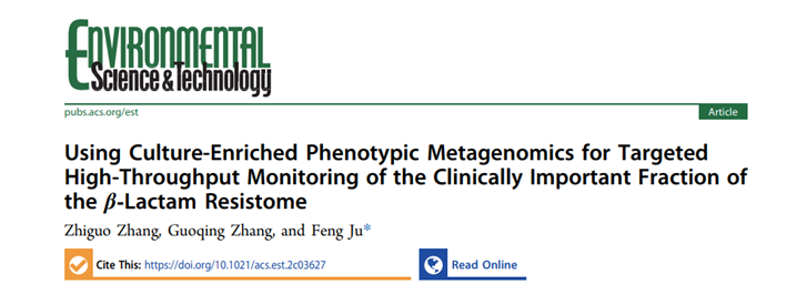 該研究成果以“Using Culture-Enriched Phenotypic Metagenomics for Targeted High-Throughput Monitoring of the Clinically Important Fraction of the β-Lactam Resistome”為題發(fā)表于環(huán)境領域國際期刊 Environmental Science & Technology,鞠峰實驗室博士生張治國為第一作者,西湖大學特聘研究員鞠峰為通訊作者。